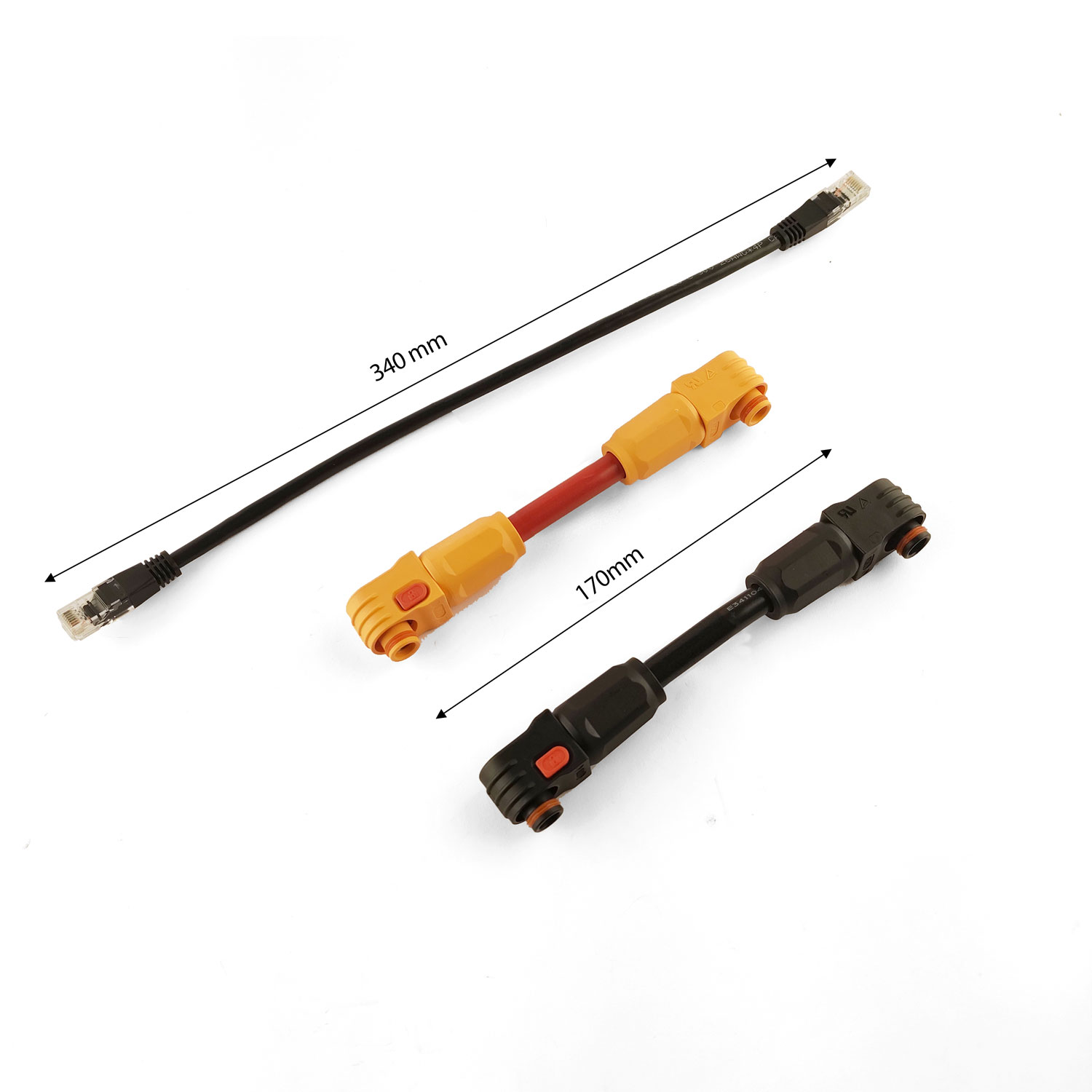 Dieses Anschluss-Set von plenti SOLAR verbindet kompakt und sicher mehrere Batterie-Module in einem Energiespeicher-System. Es enthält zwei Stromkabel (Plus und Minus, 25 mm², insgesamt ca. 17 cm Länge) sowie ein Kommunikationskabel (RJ45, Gesamtlänge ca. 34 cm). Die roten/orangen und schwarzen Batteriekabel ermöglichen eine stabile Hochstromverbindung, das RJ45-Datenkabel dient der Kommunikation bzw. Verkettung zwischen den Modulen. Ideal, um Batteriespeicher parallel zu verschalten und ein zuverlässiges Zusammenspiel der Module zu gewährleisten.